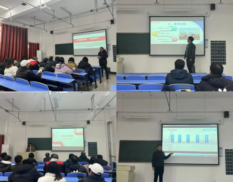 本次活动体育教学部19位教师分批开展集中磨课过关活动中的说课环节,上午9位教师、下午10位教师,其中8位老教师,11位青年教师,每位教师5分钟说课,10分钟讲课,全体教师参加了磨课过关活动。教研活动气氛热烈,老教师准备充分精心制作教学课件,王峰、陈鹏、王彩红、赵亚莉、史歌、李梦露等教师为了教学效果,亲自做示范拍视频,青年教师冯景垚、孙彬、童浩充满自信表现突出,进步很快,由高级职称组成的专家组对每一位教师进行了点评和打分。