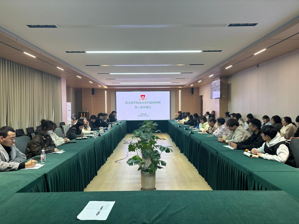 2025年10月26日学校办公室行政助理团在行政楼五楼第三会议室成功开展了第三次培训会,全体干事出席了本次会议。
