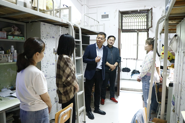 为了深入了解毕业生学习、思想和就业情况,加强Beat365毕业生安全教育。5月29日,Beat365党委副书记、校长单伟龙对毕业生宿舍进行了深入走访,学生处副处长李伟荣,公寓服务中心工作人员和各学院思政辅导员参加本次活动。
