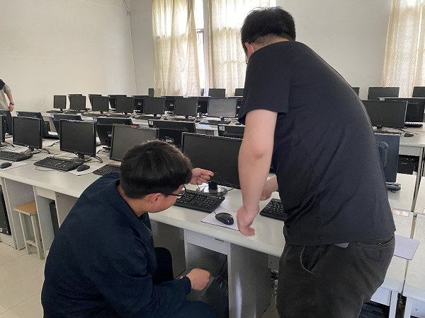 4月25日,主任带领教学基础设施管理科干事对全校教室、机房逐一进行排查。利用课间时间,深入课堂,了解教学中出现的问题,以学生视角感受多媒体设备使用是否存在不清晰、卡顿现象,并对现场排查出的问题及时解决。检查机房的各用电设备走线是否规范,防尘、防潮工作是否做到位,房间内是否配备灭火器。并针对这些问题作出相应的整改。对于网络及信息平台是否建立健全网络安全制度,能否有效防范挖矿、反动、色情、暴力等不良行为的传播,能否有效防止不法分子利用学校网络管理漏洞进行破坏信息安全的非法活动等问题,逐一列出清单并出台相关政策。