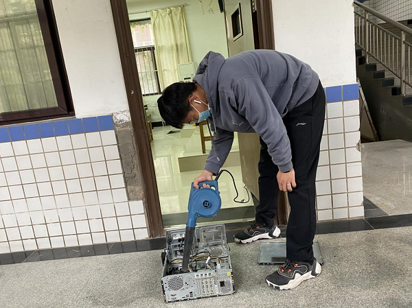 为全力保障教育教学工作,预防随着夏季到来,气温升高,在使用计算机的过程中由于主机温度过高导致电脑死机或蓝屏故障等现象,防止机箱内灰尘过多,造成散热不畅、硬件损伤等问题,4月21日网络与教育技术中心主任带领网教中心全体人员,开展全校范围内为期一周的清机灰活动。