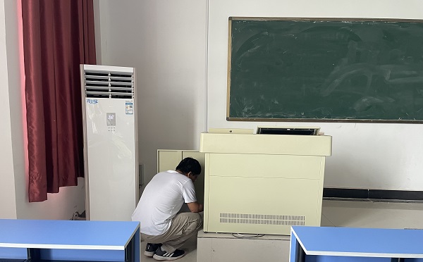 本学期末,为保证多媒体教室、机房设备正常运行,提升下学期设备使用质量,利用假期间,检修全校教学设备。根据本科教学工作合格评估要求,再结合全校现有设备参数,信息化建设与管理中心赵君主任制定针对性策略,全面安排部署人员开展全校教学设备排查及检修工作。