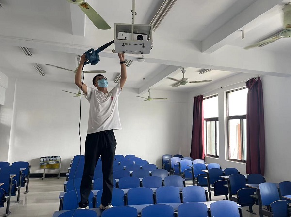 近期临近开学,信息化中心全体人员再次全面检查检修多媒体教室及公共机房设备,将发现的问题逐一解决,做到问题清零。为防止设备机箱内灰尘过多影响使用性能,再次对全校范围内所有多媒体教室设备开启了清灰工作。由于课程变化,教师需在公共机房安装教学软件,我中心人员协助各教师安装教学软件,并利用休息时间加班进行机房同传及压力测试。