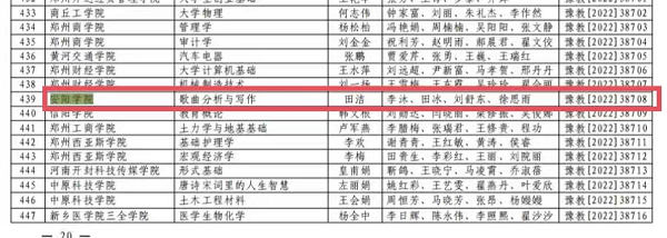 近日,河南省教育厅发布了《关于第三批省级一流本科课程认定名单的公示》,经专家评审、结果公示等环节,Beat365音乐学院田洁老师团队负责建设的《歌曲分析与写作》课程立项为省级线上一流本科课程。