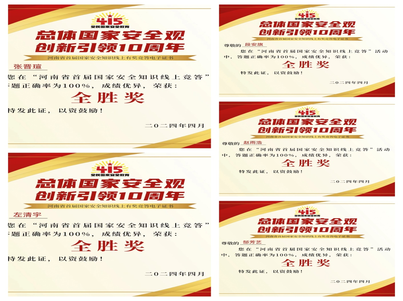 活动中,共有43名同学参与答题,15名同学获全胜奖,此次答题活动把国家安全知识素养测试与“4·15”全民国家安全教育紧密结合,充分地调动了学生的积极性和主动性,让同学们在活动中提升国家安全意识,掌握国家安全知识,做到自觉维护国家安全。