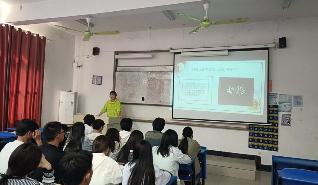 活动开始,工作人员组织团支书们进行签到,有序入场并隔空就坐。本次活动由我院团委书记霍晶晶老师担任主讲人。大会开始,霍老师分别从“文化自信的内涵、传统节日中的文化力量、青春在文化传承中的奋斗、神州同庆 文化共融、展望与行动”五个方面进行展开讲解。文化自信是一个民族、一个国家对自身文化理想、文化价值的高度信心,对自身文化生命力、创造力的高度信心,体现了文化主体对所属国家核心价值的认同,推动中华民族文化实力不断发展的源泉与动力。中国传统文化内涵深刻,智慧溢于言表,包含了我们民族形成于千百年来的精神世界,传承了我们民族性格与道德准则,中国传统文化积淀浓厚,形成民族在面对多变局势时,能激励我们守正追求、凝聚精神力量。在信息时代,青年们也积极参与传统文化的实践活动并努力学习传统文化传承的知识,也善于运用各种新媒体平台来传播传统文化。我们应该积极参与到传承和弘扬中华优秀传统文化的实践中来。通过参加各种传统文化活动、阅读经典文献、学习传统技艺等方式,深入了解传统文化的内涵和精神实质,增强对传统文化的认同感和自豪感。