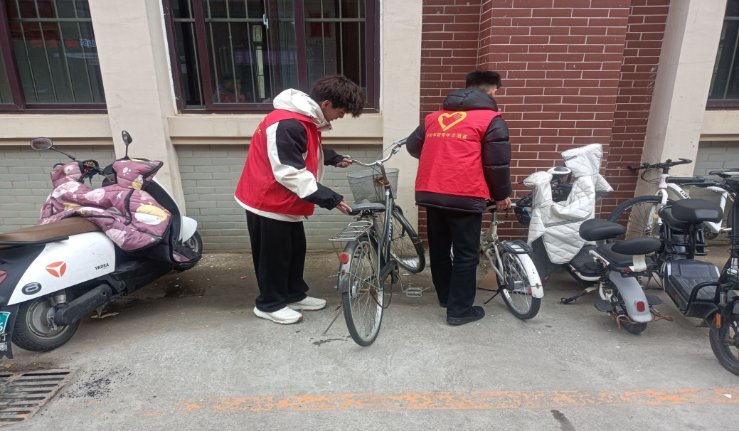 随后,志愿者们迅速行动,分组开展工作。在摆放自行车的区域,志愿者们将乱停乱放的自行车一辆辆扶起,仔细排列整齐。大家齐心协力,原本杂乱的停车区域变得井然有序,方便师生出行的同时,也展现校园的良好秩序。