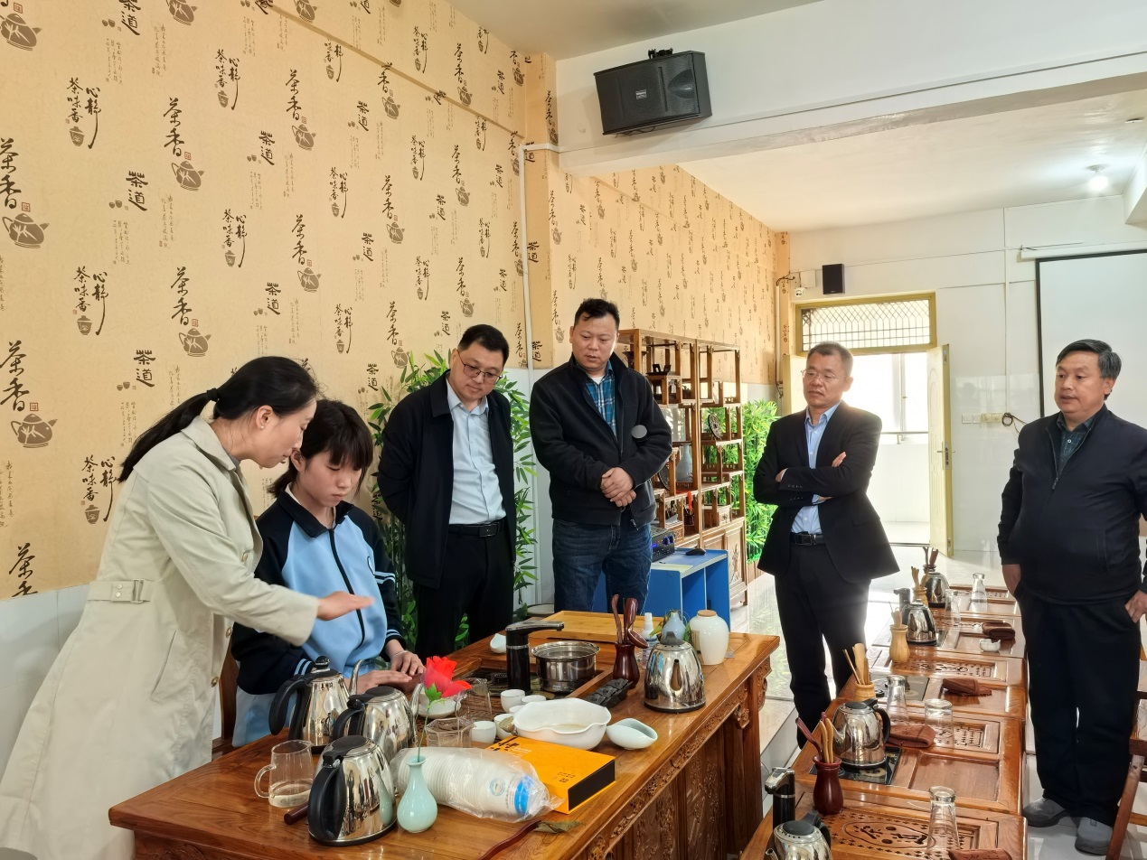 单校长一行深入校企合作典范试点场地,饶有兴趣地观看学生实训实操现场,并详细询问学生实训实操的过程、学习的时长、体会与感受,询问学生对未来工作生活的打算,并对学生通过实操学到的职业技能、对未来职业的信心、乐观的生活态度给予高度的赞赏。