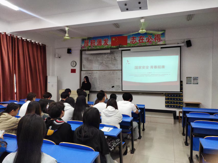 活动在庄严的团歌声中拉开帷幕。团委副书记胡珂颖首先带领参与团员学习《中华人民共和国国家安全法》等法律法规,结合党的二十大报告中关于国家安全的重要论述,系统解读了政治安全、网络安全、文化安全等核心概念,强调“国家安全无小事”,每一位青年都是国家安全的“守护者”。