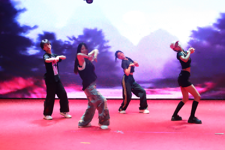 此外,韩舞、街舞的激情碰撞,用炫酷的编舞与强烈的节奏展现青年学生的蓬勃朝气;舞蹈《你的眼睛像星星》以清新甜美的风格,配合浪漫的舞台光影,传递出温暖治愈的力量;走秀《勾指起誓》中,同学们身着风格各异的服饰,从古风汉服到现代旗袍,踏着动感音乐自信登场,通过创意编排与个性展示,诠释了对时尚的独特理解。压轴曲目《我们的明天》以励志昂扬的旋律点燃全场,全体演员与观众共同挥舞荧光棒,在嘹亮的歌声中展望未来,为汇演画上圆满句号。